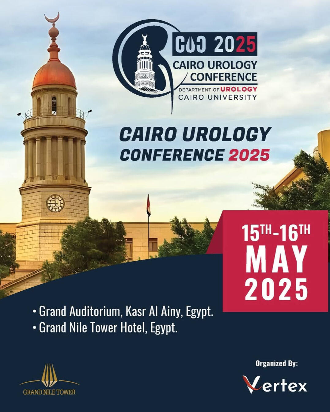 Welcome to the Cairo Urology Conference 2025!On behalf of the Urology Department of Cairo University, we invite you to the Cairo Urology Conference (CUC) 2025. This year, we promise a fascinating exploration of the evolution and advancements in Urology. We are thrilled to bring together a distinguished faculty of urologists to share their expertise and insights.We welcome you to CUC 2025 at the Grand Auditorium, Kasr Al Ainy on the 15th of May and at the Grand Nile Tower, Cairo, Egypt, on the 16th of May for a productive and enriching conference experience!Prof. Dr. Mostafa Abd El-Mohsen